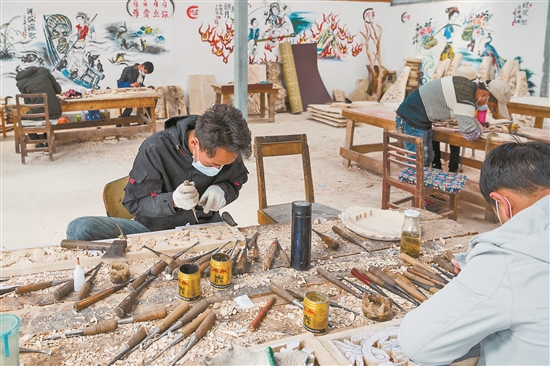 目前,剑川县各行各业正有序展开复工复产,杨元松的羊岑兴文艺承木雕工作室也复工了。该工作室积极为残疾人开展免费培训,前后共培训残疾人50余人次。目前,有12名残疾人留在了他的工作室工作,其中建档立卡贫困户有9人。这些残疾人每月平均收入2000元左右,工资主要是以雕刻件数计算,这也让他们由原来的“家庭负担”变成了技术娴熟的雕刻匠,有了一份稳定的收入,通过辛勤劳动过上了幸福日子。本报通讯员 苏金泉 摄
