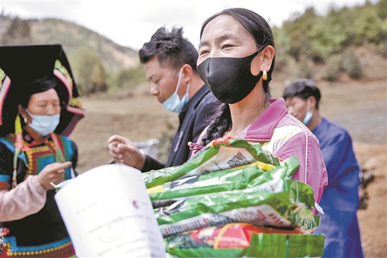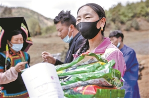 4月18日,香格里拉市三坝乡东坝村道谷小组村民们早早来到专业合作社牦牛养殖基地,与合作社签订青储饲料(玉米)种植合同,免费领取种子。