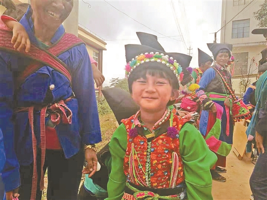 小女孩叫杨仕美, 2017年10月15日,木老元乡集镇安置点“吾巴拓”新村开寨,上一年级的小美穿着盛装,高高兴兴地和奶奶搬进了新家。 这是小美过去的家,爷爷奶奶正在家里做饭。小美的老家位于木老元乡木老元村下哈寨小组,处于滑坡点。2015年底,村里开始准备易地扶贫搬迁,她家第一个报了名。根据国家的政策和云南中烟的帮扶,她家一共享受21.2万元建新房的补助。爷爷奶奶在家养牛养猪养蜂种长寿豆,爸爸妈妈出去打工,2018年她家就脱贫了。 这是小美现在的家。如今10岁的小美,已是木老元民族学校三年级的学生了。从破旧昏暗的泥土房到干净整洁的新房,告别老旧的教室走进布朗山里最气派的学校,小美的笑容越来越甜了。