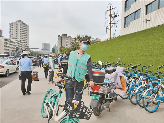 近日,昆明市交警、城管和人民西路社区及共享单车企业,在昆明开展“共享单车规范停 你我出行大文明”主题实践活动。活动中,30余名执法人员及志愿者分批对西昌路及人民西路部分路段进行巡查,对乱停乱放共享单车等不文明行为人员进行劝阻,并对倾倒、乱停乱放的共享单车进行整理。