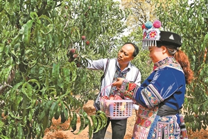 夏日清晨,从元谋县城一路驱车向北,途经刚刚落成的金沙江龙街渡大桥,40分钟后便到达全县最北部的姜驿乡。公路两边的山坡上,不时可见正在蜜桃林里忙碌采摘的果农。 在清香弥漫的桃园里,糯拉鲊村委会已脱贫的农户杨学开正在忙着将摘下的蜜桃装箱,等待着电商上门拉货。“2016年政府给苗、给肥料,派人手把手地教我们种植。现在我种了18亩桃树,今年预计能有2万多元收入。”说起现在的好日子,这个黝黑的彝族汉子笑得合不拢嘴,“一开始担心受疫情影响,桃子不好卖,现在乡政府请来电商在网上帮我们卖货,销路不愁了。我计划再种12亩,到时候我的日子会像蜜桃一样甜。” 姜驿乡具有得天独厚的气候、土地和海拔优势,特别适合蜜桃、芒果等果树的种植,但受道路交通、基础设施等因素制约,2014年被识别确定为贫困乡。 在脱贫攻坚战中,姜驿乡牢牢牵住产业扶贫“牛鼻子”,举全乡之力,充分发挥产业扶贫“造血”功能,实施以万亩蜜桃等为代表的“八万五千”产业扶贫工程,着力打造高原特色林果产业和畜牧业。当地盛产的蜜桃品种“黑美人”成熟时间早,口感独特,香中带甜,同时又比周边桃子早上市一个月,具有较强市场竞争力。全乡共种植蜜桃1.1万亩,成为群众脱贫致富的摇钱树。 2018年,姜驿乡顺利通过省州县脱贫退出考核验收,贫困发生率降至1.86%,最终以零漏评、零错退和群众认可度100%的优异成绩,实现了整乡脱贫。 “今年全乡1.1万亩蜜桃进入盛果期,我们在销售上创新模式,线上线下共同发力,帮助果农销售蜜桃,坚定贫困群众依靠产业脱贫的信心,让群众的‘钱袋子’一直鼓下去。”姜驿乡党委书记吴云强说。 本报记者 饶勇 通讯员 段卫丽 崔丽洪