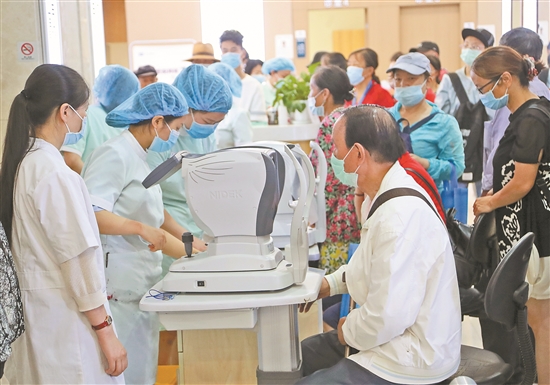 6月6日是第25个全国“爱眼日”。五华区围绕“视觉2020,关爱普遍的眼健康”主题,在区内各街道办事处开展了丰富多彩的“爱眼日”宣传活动,为健康五华行动助力添彩。本报记者 杨峥 黄喆春 摄影报道 开展免费防盲筛查 6月5日至6日,五华区残联携手昆明华山眼科医院在区内10个街道办事处同步开展“爱眼日”宣传活动。 在昆明华山眼科医院设眼科健康普查防盲筛查点,开展了免费眼科健康普查、眼底病知识宣传、防盲筛查活动;在辖区各个街道办事处和所属社区设爱眼、护眼、防盲宣传点,宣传普及爱眼、护眼、防盲知识。昆明华山眼科医院将在6月份开展一次送医下乡志愿服务活动,为西翥街道居民和残疾群众进行防盲筛查和宣传。 关爱青少年视力健康 作为云南省儿童青少年近视防控示范基地,五华天视美眼科诊所在“爱眼日”通过公众号发布了《我的第一本爱眼手册(绘本)——给孩子和家长的眼健康科普绘本》,开展对眼睛的认识、近视的形成与防控的眼健康科普知识宣传,并开通健康咨询在线服务。 同时,五华天视美眼科诊所还开展了关爱青少年视力健康义诊宣传活动,为青少年免费进行视力筛查和健康科普宣传。