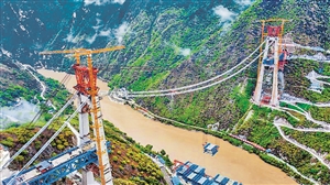 本报讯(记者 和茜 通讯员 陈实) 6月15日11时18分,随着缆索吊机将长24.4米、高12米、重640吨的钢桁梁平稳固定在吊索上,由中铁大桥局承建的丽(江)香(格里拉)铁路金沙江特大桥首片中跨钢桁梁架设成功。 据中铁大桥局五公司副总经理谢守杰介绍,用缆索吊机吊装640吨钢桁梁在世界上尚属首次。此次吊装采用的缆索吊机为中铁大桥局自主研发设计,最大吊重达800吨,是目前世界上吊重最重的缆索吊机。他介绍,施工中,为保证各个吊点受力均匀,中铁大桥局金沙江特大桥项目部制定专项测量方案,实时监测整个系统索力、位移等数据,确保吊装安全。 金沙江特大桥是丽香铁路控制性工程。丽香铁路是滇藏铁路的重要组成部分,全长139公里,设计时速120公里。