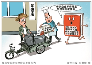 记者从河北省住房和城乡建设厅了解到,为规范餐厨废弃物收运处置行为,河北省出台《河北省城市餐厨废弃物收运处置行业监督管理办法》。按照规定,餐饮企业需与取得经营许可的企业或相关政府职能部门签订收集运输协议,不得将餐厨废弃物随意交与其他企业或个人处理。 新华社发 朱慧卿 作