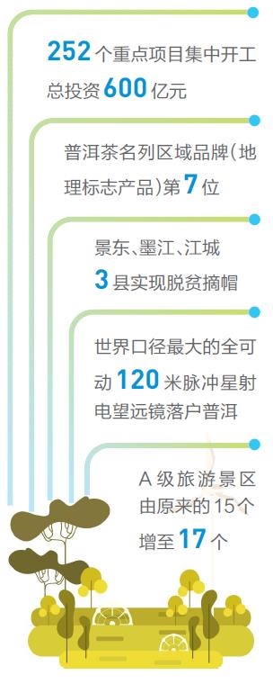 2020年是决胜全面建成小康社会、决战脱贫攻坚之年。面对突如其来的新冠肺炎疫情,普洱市用担当挥笔作答“六稳”“六保”考卷,在统筹疫情防控和经济社会发展中担当作为。 ●上半年252个重点项目集中开工 3月和5月,普洱市2020年一季度、二季度重点项目分别集中开工。两次集中开工的项目共252项,涵盖基础设施、产业发展、水利、医疗卫生等“补短板”领域,总投资600亿元,2020年计划完成投资126亿元。 ●新增2个3A级旅游景区,A级旅游景区达到17个 1月4日,澜沧县老达保景区、景迈山茶林文化景区正式获批成为国家3A级旅游景区。至此,普洱市A级旅游景区由原来的15个增至17个,其中4A级景区4个(普洱国家公园、西盟勐梭龙潭、墨江北回归线标志园、天士力帝泊洱生物茶谷),3A级景区10个,2A级景区3个。 ●在全国率先发布推出普洱茶十项标准 1月12日,普洱市普洱茶十项标准暨品牌建设新闻发布会在昆明举行。此次发布的普洱市普洱茶十项标准包括“七项地方标准”和“三项团体标准”,标志着普洱市系统、超前、高位谋划的普洱茶产业发展走在了全国、全省的前列。 ●有机茶认证企业和认证证书数量双居全国首位 据国家认证认可监督管理委员会认证行政监管系统统计数据显示,截至2020年3月20日,普洱市获得中国有机茶认证企业达82家、认证证书达120张,普洱市中国有机茶认证企业和认证证书数量均居全国首位。 ●普洱茶登上2020年中国品牌价值评价信息榜,名列区域品牌全国第7名 5月10日是我国第四个中国品牌日,中国品牌建设促进会联合中国资产评估协会举行了“2020中国品牌价值评价信息发布”线上活动。活动中,中国品牌价值评价信息连续第七次发布,普洱茶名列区域品牌(地理标志产品)第7位。 ●边境4县核酸检测实验室全部投入使用 5月10日,澜沧、孟连、西盟、江城4个边境县疾控中心核酸检测实验室全部建成并投入使用。实验室建成启用后,填补了普洱市县级无核酸检测能力的空白,切实提高了全市核酸检测的能力和效率。 ●景东、墨江、江城3县实现脱贫摘帽,澜沧县通过省级第三方实地评估 5月17日,云南省政府发布通知,正式批准全省31个县(市、区)退出贫困县序列。其中,景东、墨江、江城3县实现脱贫摘帽。澜沧拉祜族自治县顺利通过省级第三方实地评估检查,标志着普洱市提前一年完成脱贫攻坚任务,全市脱贫攻坚工作取得决定性胜利。 ●世界第三、亚洲第一大酵母企业在普洱茶产地投资建厂 5月18日,A股上市公司安琪酵母发布公告称,为进一步促进长远持续的稳定发展,公司赴普洱市澜沧县设立子公司,投资建设年产2.5万吨酵母生产线项目一期,总投资5.4亿元。据了解,安琪酵母成立于1986年,2000年在上海证券交易所上市。经过多年的发展,安琪酵母已经是世界第三、亚洲第一的酵母公司。 ●世界口径最大的全可动120米脉冲星射电望远镜落户普洱 5月20日,景东120米脉冲星射电望远镜建设工作对接座谈会在思茅召开。景东120米脉冲星射电望远镜项目是目前世界上口径最大的全可动脉冲星射电望远镜,是国际一流的射电天文台。项目预计总投资3.5亿元,建设周期3年半,由中国科学院云南天文台、云南大学、普洱市联合建设。项目建成后,与贵州“中国天眼”等配合,将使我国在脉冲星时间标准体系建设和低频引力波探测领域进入国际先进行列,脉冲星综合观测研究能力达到世界领先地位。 ●创建第六届全国文明城市两年综合测评成绩排名全国第16位 6月,中央文明办公布了2019年全国文明城市年度测评结果。综合2018年和2019年测评成绩,普洱市在全国113个地级市全国文明城市提名城市中排名第16位,在全省参加测评的地级市全国文明城市提名城市中位居第一。 本报记者 沈浩 李汉勇 整理