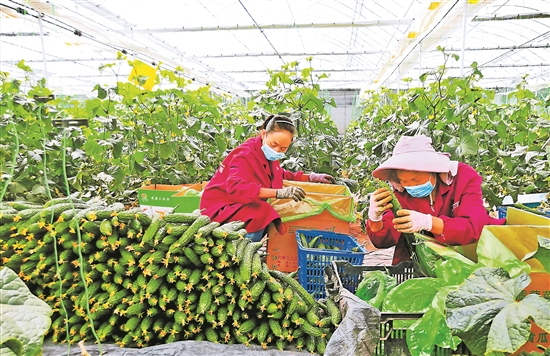 近年来,巍山彝族回族自治县持续打造“绿色食品牌”,积极建设规模化绿色生产基地,推动特色农业和食品加工产业发展。云上之都农业发展有限公司投资2000多万元,以“公司+基地+合作社+农户”模式,在大仓镇同兴村种植黄瓜、番茄、辣椒等蔬菜1169亩,产品远销大理、长沙、贵阳等省内外市场。图为云上之都农业发展有限公司生产基地。本报记者 庄俊华 摄
