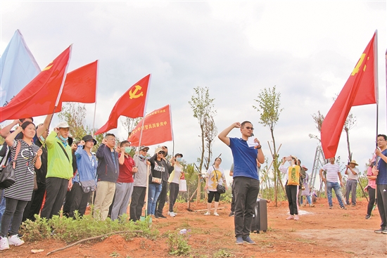 连日来,我省各地抢抓苗木栽种的最佳时节,全省各地干群同心齐上阵,全面掀起植树热潮。 红河州:推进绿色生态靓州建设 近日,红河哈尼族彝族自治州举行2020年义务植树活动,红河州党政军领导干部和武警官兵等俯身挥铲、扶苗培土、拎桶浇水,一同“点绿”蒙自市圣境南山植树区。3000多株湿地松、红叶石楠、栾树、竹柏、清香树迎风挺立,一道道新绿延展成景,将原本空旷的山坡装点得生机盎然。 多年来,红河州委、州政府高度重视全民义务植树工作,将植树活动作为带动引领的载体之一,以实际行动践行习近平生态文明思想,践行绿水青山就是金山银山的理念,持续抓好滇南中心城市面山通道绿化建设与生态修复,推进红河“绿色生态靓州”建设,以生态文明建设引领红河高质量跨越式发展。 丽江市:倡议全民关爱生态环境 丽江市近日发出《全民关爱生态环境,人人参与植树造林》倡议书,倡议全市机关、团体、企事业单位干部职工和广大市民,践行绿色发展理念,争做“美丽丽江”建设的宣传者;认真履行植树义务,争做“美丽丽江”建设的参与者;积极创新植绿方式,争做“美丽丽江”建设的推动者;关心爱护绿色生命,争做“美丽丽江”建设的守护者。在适宜植树造林的6月,迅速行动,投身到全民义务植树活动中,以实际行动为丽江大地再添新绿。 石林县:整治破坏森林违法行为 6月29日,石林彝族自治县举行破坏森林资源违法违规行为问题专项整治工作现场推进会暨2020年义务植树造林活动启动仪式。会上通报了石林县非法侵占林地种茶毁林等破坏森林资源违法违规问题专项整治和生态修复工作进展情况。 在义务植树现场,石林县干部群众齐心协力、配合默契,挥锹铲土、扶直苗木、培实新土、提桶浇水,一棵棵新栽的树苗迎风挺立,传递着春的生机与活力,为彝乡增添了几许绿意。 据了解,2018年以来,石林县通过加大对毁林开垦、违法违规改变林地用途行为的整治力度,共清理毁林开垦林地面积11.04万亩。今年,全县计划人工造林3.17万亩、封山育林2.8万亩、森林抚育1万亩、低效林改造0.77万亩、提质增效0.1万亩,义务植树77万株。 晋宁区:美化高速公路32公里 近日,晋宁区举行“美丽公路·晋宁区杨善洲纪念林”植树活动。 随着植树活动启动的一声令下,参加启动仪式的林草部门干部职工及志愿者迅速进入植树地块,扬锄挥铲,培土扶树,提水浇灌,植树现场人头攒动,一片忙碌。一棵棵绿化树木在大家同心协力的合作中扎根屹立,原本荒芜的山头被徐徐染绿。 据悉,本次美丽公路打造,晋宁辖区内昆磨高速(晋宁段)路域环境绿化、美化里程为32公里,共计9008亩,其中打造绿色廊道合计面积2178亩,增绿、复绿面积6830亩。 龙翔街道:开展主题党日活动 龙翔街道办事处党工委、办事处携龙翔街道党建联盟成员单位近日在五华区西翥街道办事处龙池山庄后山开展“携手共建话初心、义务植树同前行”暨“七一”建党节主题党日活动,旨在贯彻落实习近平生态文明思想,深入践行“生态优先、绿色发展”理念。 活动中,参加活动的150余名党员卸苗、放线、挖坑、扶苗、培土,各个环节有条不紊地进行,大家挥汗如雨,共栽种300余棵树。当天,龙翔街道还在龙池山庄后山大团岭干设置“党建联盟”先锋林。 本报记者 王丹 和茜 熊明 张雁群 龙舟 通讯员 田大明 乐强 梅蓉蓉