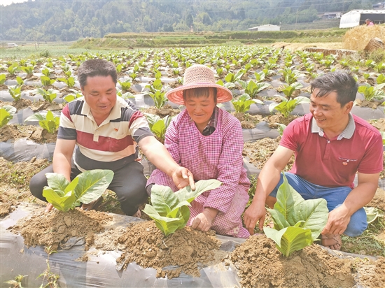 “今年我家还跟着‘老凡’种烟,他的烤烟种植技术过硬,无论风吹日晒,都会到田间地头指导我们种烟,不管哪家,只要好好种烟,每年收入就能达上万元。”在龙陵县龙新乡绕廊社区的田间地头,常常能听见烟农们这样提到“老凡”。 大家口中所说的“老凡”名叫杨绍凡,今年49岁,是龙新乡绕廊社区的烤烟科技辅导员,也是一名种烟大户,更是一名有着27年党龄的共产党员。2010年,杨绍凡到龙新乡担任烤烟科技辅导员,年复一年指导绕廊社区群众种好烤烟,帮助群众实现脱贫致富。 刚开始推广种植烤烟时,由于群众对种植烤烟的认识不够,他和乡村干部挨家挨户做工作、传技术……群众从一开始的意愿不强到如今抢着种植烤烟,这与杨绍凡的坚持和努力是分不开的。2019年,绕廊社区共有14户建档立卡贫困户种植烤烟,种植面积98亩,实现产值37万余元,户均增收近2万元。 为了带动群众积极发展好烤烟产业,实现稳步脱贫致富,杨绍凡充分发挥好党员先锋模范作用,积极参加种植技术培训,不断提高自己的种烟水平,示范带动农户种植好烤烟。2019年,他个人带头承包种植烤烟30亩,其中上等烟比例占76.18%,实现总产值15.5万元。今年,他继续承包种植烤烟30亩,现在烤烟长势正好,丰收在望。“现在种烟条件好,不仅政府扶持政策好,还技术服务到田间地头,只要坚持科学种烟,就能种出好烟,就能卖个好价钱,烟农就能实现脱贫致富。”杨绍凡说。 近年来,龙新乡通过强化技术培训和科学种植,着力推进烤烟生产转型升级,帮助村民实现稳步脱贫增收,不断巩固提升脱贫攻坚成果。2020年,全乡烤烟种植合同面积1509亩,计划收购4000担,预计实现产值570万元。 本报记者 杨艳鹏 李建国 通讯员 禹磊