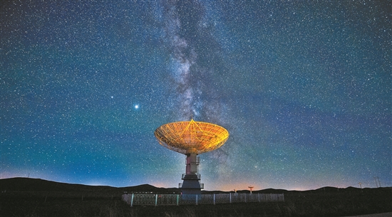 7月18日晚至19日凌晨,在位于内蒙古锡林郭勒盟正镶白旗境内的国家天文台明安图观测基地,尼欧怀兹彗星划过天际。在明安图观测基地内,排列着100面白色的抛物面天线。这个庞大的天线阵列便是草原“天眼”——明安图射电频谱日像仪。草原“天眼”持续接收太阳射电辐射,然后由科研人员进行数据分析研究,对空间环境监测、太阳活动预报均有重要作用。图为7月19日在明安图观测基地拍摄的星空。 新华社发