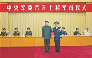 新华社北京7月29日电(记者 梅世雄) 中央军委晋升上将军衔仪式29日在北京八一大楼隆重举行。中央军委主席习近平向晋升上将军衔的火箭军政治委员徐忠波同志颁发命令状。 下午4时30分许,晋衔仪式在庄严的国歌声中开始。中央军委副主席许其亮宣读了中央军委主席习近平签署的晋升上将军衔命令。中央军委副主席张又侠主持晋衔仪式。 晋升上将军衔的徐忠波军容严整、精神抖擞来到主席台前。习近平向他颁发命令状,表示祝贺。佩戴了上将军衔肩章的徐忠波向习近平敬礼,向参加仪式的全体同志敬礼,全场响起热烈的掌声。 晋衔仪式在嘹亮的军歌声中结束。 中央军委委员魏凤和、李作成、苗华、张升民,以及军委机关各部门、驻京大单位领导等参加晋衔仪式。