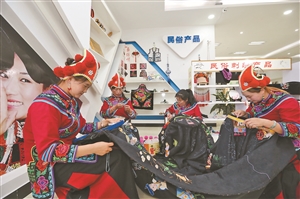 本报讯(记者 周灿) 南华县建立健全农村电子商务服务体系,大力发展农村电商助力脱贫攻坚,去年全县实现电商交易额21067万元,增长28.29%;今年1月至5月,实现电商交易额6315.86万元,增长31.3%,农村电商在脱贫攻坚中发挥了重要作用。 自2015年7月被列为全国电子商务进农村综合示范县以来,南华县通过建设农村电子商务服务站点、物流仓储和配送服务中心,突破农村网络基础设施、电子商务操作和物流配送等瓶颈制约,建立健全农村电子商务服务体系,促进电商经济发展。 南华县电子商务广场投资3000余万元,建筑面积5000多平方米,整合野生菌信息港、野生菌大数据中心和野生菌溯源系统等多种功能,设有线下展示中心、人员培训中心、电商孵化中心等9大功能区,为电商企业、小微电商提供完整的仓储、物流、运营、农产品检测、产品展示等“一站式”综合服务。目前,共有30户电商、物流企业入驻。 图为在南华县电子商务广场线下展示中心,彝族妇女演示彝族刺绣。