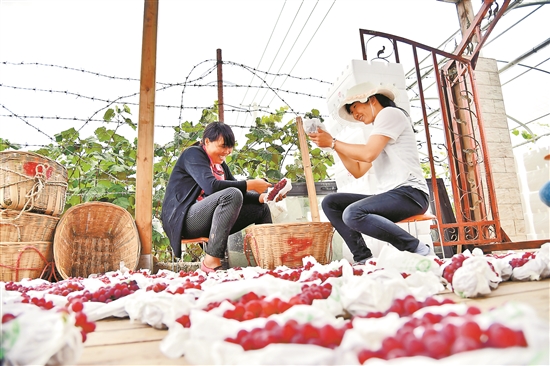 本报讯(记者 熊瑛) 8月8日,为期9天的安宁市禄脿街道2020年葡萄展销会在艾家营村拉开帷幕,现场举办了葡萄采摘及展销、农特产品展销、特色美食体验及趣味游戏等活动。 近年来,禄脿街道党工委、办事处大力推动乡村旅游+产业发展,把艾家营葡萄打造成为优质品牌。目前,当地已经成功举办5届葡萄文化旅游节。 今年,禄脿葡萄预计产量4400余吨,受新冠肺炎疫情影响,销售价格及销售量较往年有所下降。为进一步支持葡萄产业发展,带动葡萄销售,将农户损失降到最低,禄脿街道党工委、办事处在落实疫情防控工作的前提下,策划举办“助农促销 共渡难关”主题葡萄展销会。 当天,艾家营村与昆明麦浪农业、星巴特农业、昆明小魏水果批发3家企业成功签约667吨葡萄购销协议。