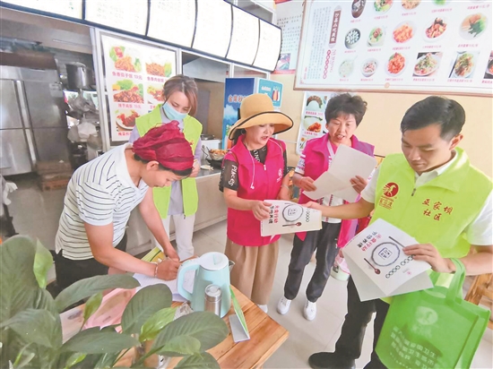 本报讯(记者 茶志福 通讯员 郭武辉) “我们是巫家坝社区的志愿者,我们在此向你们呼吁,品尝舌尖上的美味,杜绝舌尖上的浪费。请你们帮忙向来往的顾客宣传,适度点餐,吃不完的打包带走。”8月14日,官渡区巫家坝社区联合社区军嫂志愿服务队开展“光盘行动”入户宣传活动。 当天,社区工作人员和志愿者队伍分组行动,走进辖区小吃部、饭店等餐饮经营场所和居民家中发放“光盘行动倡议书”,引导就餐群众和居民发扬厉行节俭的品格,向“舌尖上的浪费”说“不”,树立节约光荣、浪费可耻的思想观念。志愿者们共对辖区范围内133家餐饮企业进行宣传倡议,共发出宣传折页237份,粘贴宣传海报477份。 巫家坝社区党总支书记李文娟表示,社区将结合创文工作常态化推进“光盘行动”宣传活动,进一步弘扬勤俭节约的传统美德,在全社区营造文明消费、绿色消费、低碳消费的氛围。