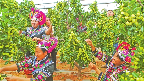 李宛融 邵永忠 “中国阳光城、云南北大门、绿色生态县、彝族赛装源”——位于金沙江畔的永仁县,2189平方公里的土地上,11.19万永仁各族儿女坚决贯彻精准扶贫精准脱贫基本方略,坚定落实党中央和省委、州委的决策部署,誓师立令、团结一心、众志成城,力量聚焦脱贫攻坚主战场,打好脱贫攻坚主动战、打通脱贫造血主动脉,攻克贫困堡垒、补齐贫困短板、发展脱贫产业、办好惠民实事。2019年4月,经省委、省政府研究,同意永仁县退出贫困县序列,决战决胜脱贫攻坚取得决定性成效,为乡村振兴打下了坚实基础。 永仁县地处成昆经济带云南北大门,全县辖7个乡镇、63个行政村(社区)、667个村民小组,少数民族人口比例高达64.89%,山区面积达97%,贫困发生率曾高达28.8%,是国家集中连片特困地区滇西边境山区片区县,国家扶贫开发工作重点县。2014年,全县精准识别建档立卡贫困村50个,建档立卡贫困人口6275户22310人。 脱贫攻坚战打响以来,永仁县始终把脱贫攻坚作为重大政治任务、第一民生工程,坚定“全面建成小康社会,一个不能少;共同富裕路上,一个不能掉队”的信念,同心齐攻坚,携手战贫困,贫困地区生产生活条件明显改善、经济社会发展明显加快、治理能力明显提升、村容村貌明显改变、贫困群众收入水平明显提高,贫困发生率从28.8%降至2019年的0.32%。 压责任 聚集力量战贫困 “人民对美好生活的向往,就是我们的奋斗目标。”脱贫攻坚战打响以来,永仁县始终坚持推动各方精锐力量、优质资源向脱贫攻坚一线集聚,确保令旗所指、攻之所向、战之必胜。严格落实脱贫攻坚党政“一把手”负责制,全面压实县、乡、村“三级书记”抓扶贫主体责任。县委、县政府主要领导担任县扶贫开发工作领导小组双组长,成立县脱贫攻坚指挥部,统一调度、统一指挥,构建横向搭“桥梁”、纵向竖“梯子”、上下齐联动的脱贫攻坚指挥调度工作机制。县委常委兼任乡镇党委第一书记,县级领导担任村战地指挥所指挥长,强化统筹指挥,工作重心下沉一线、全部力量聚焦脱贫攻坚主战场。与县级领导、行业部门、挂包部门、乡镇和村,层层签订“军令状”,全面压实“十个责任”。累计选派186名党性强、作风正、业务精的干部担任村第一书记,选派679名守信念、讲奉献、有本领的干部为驻村工作队员,全县各级干部2883人结对帮扶6275户贫困户;招商银行、上海市嘉定区、省妇联、州委宣传部等16家单位对口帮扶永仁,在派驻干部和政策、资金等方面给予了鼎力支持;深入推进“万企帮万村”永仁行动,64户企业、专业合作组织与321户贫困户结成帮扶对子;大力推进“互联网+”社会精准扶贫工作,累计捐赠资金33.21万元。 重民生 夯实基础战贫困 始终把改善基础设施和公共服务作为改善民生、退出贫困的先决条件,聚焦贫困短板,编制县级项目库、乡路线图、村施工图,投入16.42亿元推进贫困村基础设施建设,乡村发展后劲显著增强。618户2322人通过易地扶贫搬迁全部迁入新居,完成了农村危房改造7094户(建档立卡贫困户3611户),全面解决了基本住房安全问题。全县行政村和自然村道路硬化率分别达100%和84.91%,通乡通村危险路段防护设施实现全覆盖。实施贫困地区农田水利项目2933件,有效灌溉率达75%,农村自来水普及率达93%,村组户均有安全饮水保障。实施村庄“七改三清”行动,村民小组至少有1个公厕和1个垃圾池。全县63个行政村654个自然村全部通10千伏动力电;行政村光纤网络、4G网络全覆盖。义务教育均衡发展,顺利通过国家督导评估认定,义务教育入学率、巩固率均达99.9%以上。县内有两所二级甲等医院,乡镇和行政村均有一所标准化卫生院和标准化村卫生室,建档立卡贫困人口100%参加基本医疗保险、大病保险和家庭医生签约。 固根本 培强产业战贫困 始终把产业扶贫作为脱贫攻坚的重中之重和根本之策。积极抢抓省委、省政府打造绿色“三张牌”重大战略机遇,坚持输血与造血并进,充分发挥交通区位、阳光资源、绿色生态、国土空间、民族文化“五大优势”,科学编制产业扶贫“县、乡、村、组、户”五级规划,培强壮大绿色产业,打通脱贫造血主动脉。大力发展绿色生态产业,打造阳光特色水果品牌,推动“一户一产”“一村一品”“一乡一特”“一县一业”发展,全县种植经济林果面积达53万亩,农业人口人均拥有6亩特色经济林果。建立利益联结机制,通过企业与合作社、合作社与贫困户“双绑定”,采用“产业+新型农业经营主体+贫困户”“公司+党支部+合作社+基地+农户”等模式,实现307户新型经营主体与贫困户利益联结全覆盖,让贫困户在参与产业发展得“现金”、土地流转获“租金”、扶贫车间拿“薪金”、集体经济有“酬金”,仅永仁哲林实业有限公司4万亩晚熟芒果基地直接吸纳82户164人贫困人口长期稳定就业,并带动全县种植芒果10万余亩。突出就业扶贫增收,对贫困家庭劳动力开展“订单式”“定向式”“菜单式”就业技能培训,确保所有贫困劳动力均参加1项以上技能培训;全县累计转移就业11631人次,转移就业率达73%,实现1人就业全家稳定脱贫。 树典型 激发内力战贫困 始终坚持志智双扶,引导贫困户激发脱贫斗志、增强致富本领,坚定脱贫信心、摆脱“精神贫困”。坚持“富脑袋”与“富口袋”并重,深入开展“自强、诚信、感恩”主题实践活动,抓