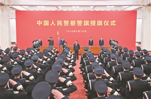 参加授旗仪式的人民警察进行了集体宣誓,誓词为:对党忠诚,服务人民,执法公正,纪律严明;坚定纯洁,让党放心,甘于奉献,能拼善赢。