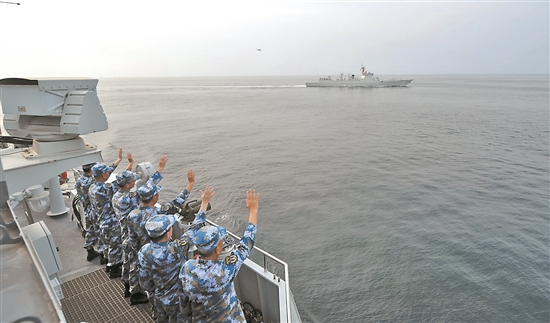 新华社亚丁湾9月25日电(江山) 中国海军第35、36批护航编队近日在亚丁湾顺利完成任务交接,这标志着第35批护航编队已圆满完成护航任务,第36批护航编队正式担负起亚丁湾、索马里海域护航任务。 两批编队按预定时间在海上会合后,举行了任务交接仪式,为香港籍重大件运输船“振华27”号实施共同护航,还组织了分航仪式。随后,第35批护航编队驶离亚丁湾,第36批护航编队开始独立接续护航任务。 第35批护航编队于今年4月28日从舟山起航,赴亚丁湾、索马里海域执行护航任务。面对国际局势突变、海上威胁严峻、新冠肺炎疫情全球蔓延等新挑战,编队科学统筹兵力使用,共为27批49艘次中外船舶提供伴随护航,为过往亚丁湾的百余艘商船提供区域护航。 据悉,第36批护航编队于9月3日从青岛起航,由导弹驱逐舰贵阳舰、导弹护卫舰枣庄舰、综合补给舰东平湖舰和2架舰载直升机组成。航渡期间,编队针对海上安全形势和护航任务特点,开展一系列针对性训练,有效提升了编队遂行护航任务的能力。 图为海军第35批护航编队官兵在太原舰上与第36批护航编队贵阳舰挥手告别。新华社发