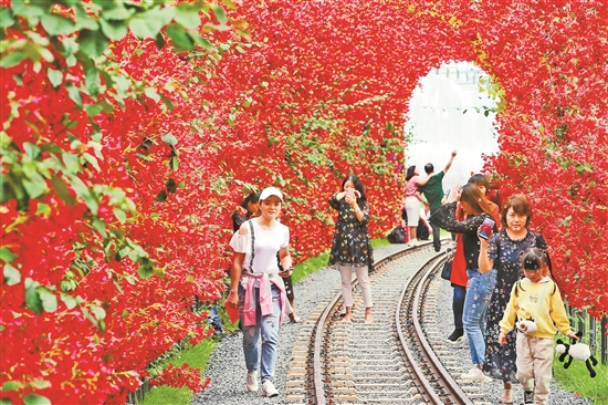 “十一”黄金周期间,在全省景点景区、乡村山野、河边湖畔,来自全国各地的游客陶醉其中,共度佳节。白天,年轻人邀约朋友、家人一起到网红地“打卡”,频频拍照上传至各类社交平台,点赞量噌噌上涨;夜晚,汉服体验、音乐表演、花式调酒等让大家流连忘返。图为游客们徜徉在滇池南岸醉人风光中。 本报记者 张彤