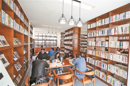 近日,昆明市图书馆城市书房正式对外开放,每天9时至24时,市民只需刷本人身份证或昆明市图书馆借阅证就可免费进入。城市书房藏书8000册,阅览座席40个,设有自助借还区、阅览区、电子书下载区等。图为读者在城市书房内阅读。