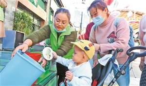 近日,昆明市护国街道祥云街社区组织开展了“分类在指尖,文明在心间”垃圾分类网格化宣传活动。社区志愿者通过科普宣讲、趣味游戏、卡通宣传员巡游宣传等方式,普及垃圾分类知识,引导市民养成垃圾分类的好习惯,倡导文明健康和绿色环保的生活理念。 本报记者 杨峥 摄