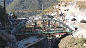 近日,香丽高速虎跳峡互通钢拱桥顺利吊装合龙。合龙工程包括前期基础支架施工和钢箱拱桥正式安装,主体部分施工完成后,桥面铺装、交通工程等后续施工也将全面展开,为今年年底香丽高速顺利通车奠定坚实基础。