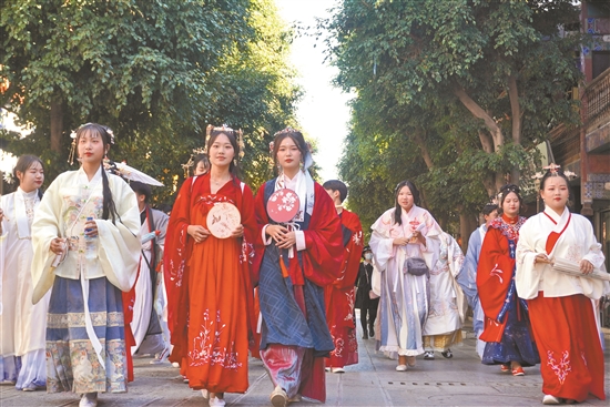 近日,一场国风盛典汉服巡游活动在建水古城上演。