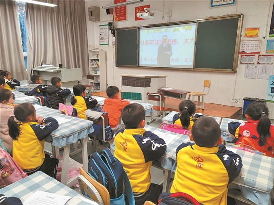 本报讯 (记者 张雁群) 近日,昆明市中华小学开展第七届国家宪法日活动。活动一改往日单调的法律说教,通过学生自导自演法庭审判,让孩子们对法律有了更直观、更生动的认识,亲身感受到司法的公正和法律的威严,为创建“平安校园、法治校园”营造了良好的氛围。 庭审过程中,学生们变身“法官”和“书记员”等法庭诉讼角色。“审判长”公平公正,庄严宣判;“书记员”严肃公正,有条不紊地参与庭审;“控辩双方”举证、质证、激昂雄辩;“被告人”真诚悔过,改过自新……此次模拟选取的案例是常见的校园伤害事件,同学们完整地展示了故意伤害审理的全过程。 昆明市中级人民法院未成年人案件审判庭副庭长、法官和书记员,受邀与师生们一同观摩了精彩的模拟庭审。模拟庭审前,中华小学全体师生同步收听收看了北京主会场的“宪法晨读”活动和线上法治课。