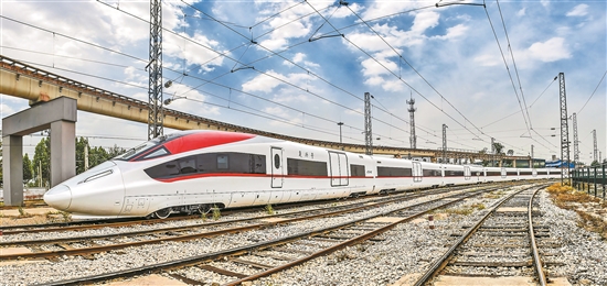12月23日,时速350公里高速货运动车组在中车唐山机车车辆有限公司正式下线,未来将在全球首次实现时速350公里高铁货物快运,显著提升我国轨道交通装备的自主创新水平。图为时速350公里高速货运动车组在试验轨道上运行(11月30日摄)。 新华社发