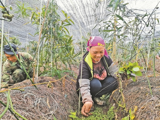 近年来,澜沧拉祜族自治县东回镇依托澜沧良宝生物科技有限公司建立中药材GAP种植基地,完成示范种植基地建设3000亩,种植白芨、滇黄精等中药材,采取“公司+党支部+专业合作社+贫困户”模式,打造就业扶贫车间,吸纳当地贫困人口就业,学习种植技能,增强致富本领,已带动全镇482户农户增收脱贫。本报记者 沈浩 摄