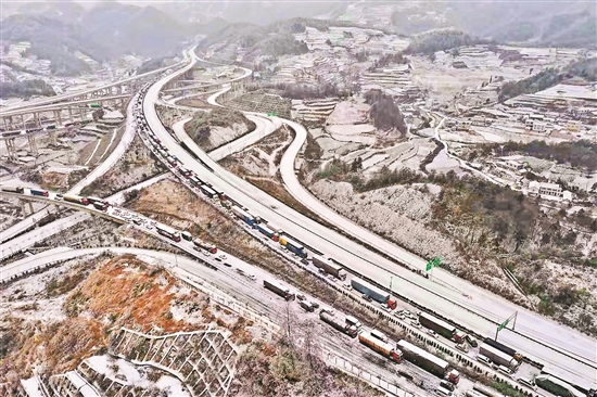 银昆高速(功山-待补段)1月10日13时30分左右,因发生11车连撞车祸造成堵车,在30多公里路段有数千辆车、数千人被困超过24个小时。截至11日13时发稿时间,道路冻困尚未解除。本报通讯员 峗庆云 老方 摄