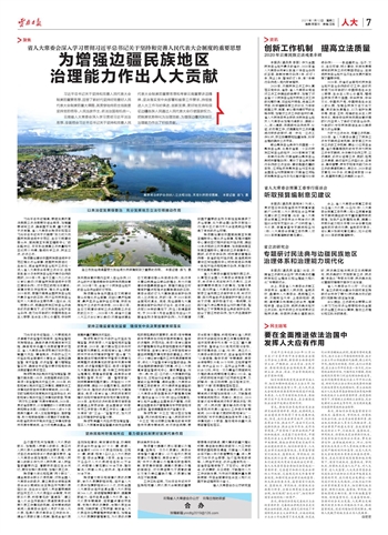聚焦 习近平总书记关于坚持和完善人民代表大会制度的重要思想,回答了新时代坚持好完善好人民代表大会制度的重大课题,其贯穿始终的主线就是坚持党的领导、人民当家作主、依法治国有机统一。云南省人大常委会深入学习贯彻习近平法治思想,全面领会习近平总书记关于坚持和完善人民代表大会制度的重要思想和考察云南重要讲话精神,坚决落实党中央部署和省委工作要求,持续推进人大工作与时俱进、创新发展,更好地支持和保证边疆各族人民通过人民代表大会行使国家权力,把制度优势转化为治理效能,为增强边疆民族地区治理能力作出了积极贡献。 以良法促发展保善治 充分发挥地方立法引领推动作用 习近平总书记强调,要把发展改革决策同立法决策更好结合起来,加强重要领域立法,确保国家发展、重大改革于法有据。省人大常委会持续紧扣落实习近平总书记关于云南要“努力成为我国民族团结进步示范区、生态文明建设排头兵、面向南亚东南亚辐射中心”的战略定位,紧紧抓住提高立法质量和效率这两个关键,推进科学立法、民主立法、依法立法。 持续围绕建设我国民族团结进步示范区强化法治保障。把握民族团结这一生命线,把全省民族自治地方立法统一纳入省人大常委会年度立法计划,在每年批准10多件民族自治地方单行条例的同时,2019年1月,省十三届人大二次会议审议通过《云南省民族团结进步示范区建设条例》,对示范区的规划与建设、保障与服务作出规定,强化法治保障。2019年底,根据云南是全国民族自治地方最多省份的实际,两次召开民族自治地方人大常委会主要负责人座谈会,统一思想认识,明确在民族区域自治法尚未修改的情况下,修订民族自治地方自治条例,把习近平新时代中国特色社会主义思想、社会主义核心价值观、中华民族共同体意识等内容写入自治条例,以法治的方式推进铸牢中华民族共同体意识。2020年7月,全省37个民族自治地方的自治条例全部修订完毕。 持续围绕争当我国生态文明建设排头兵强化法治保障。突出以最严格制度、最严密法治保护生态环境,积极发挥地方立法的引领作用,2018年以来,生态文明建设领域立法占同期立法总数的三分之一。2020年5月,由省十三届人大三次会议审议通过《云南省创建生态文明建设排头兵促进条例》,践行绿水青山就是金山银山的理念,助力云南建设中国最美丽省份。根据云南生态环境保护重点和难点在高原湖泊的实际,常委会把修订九大高原湖泊保护条例纳入立法规划,历时3年,于2019年底全面完成滇池、洱海、抚仙湖等九大高原湖泊保护条例修订任务。在没有上位法可以参照的情况下,历经2年调查研究,于2018年5月在全国率先出台《云南省生物多样性保护条例》,为云南建设国家重要的生物多样性宝库提供了法治保障,也为联合国《生物多样性公约》第十五次缔约方大会在昆明召开营造了有利的法治环境。 持续围绕建设我国面向南亚东南亚辐射中心强化法治保障。梳理与辐射中心建设密切相关的地方性法规,提出18件法规的立改废清单,加快面向南亚东南亚辐射中心建设的立法保障步伐。同时,修改旅游条例、城市建设管理条例等一批省的地方性法规,批准昆明市建设区域性国际中心城市促进条例等一批地方性法规和单行条例,助推对外开放新高地建设。 省人大常委会重视加强协同立法。认真落实全国人大常委会领导批示要求,针对赤水河流域涉及云贵川、立法保护需要共同发力的情况,加强与贵州、四川两省人大常委会的沟通联动,探索三省共同立法保护赤水河。针对云南、四川两省在泸沽湖保护方面立法主体不对等、保护标准不统一等问题,与四川省及凉山彝族自治州协调对接,指导废止了宁蒗彝族自治县的保护条例,出台了丽江市的条例,加大泸沽湖保护力度。 坚持正确监督有效监督 确保党中央决策部署贯彻落实 习近平总书记指出,人大要把宪法法律赋予的监督权用起来,坚持监督和支持相结合,确保法律法规得到有效实施,确保党中央重大决策部署贯彻落实。省人大常委会持续聚焦打好防范化解重大风险、精准脱贫、污染防治三大攻坚战和全面建成小康社会,坚持正确监督、有效监督、依法监督,着力增强监督实效,确保总书记指示要求和党中央决策部署的贯彻落实。 持续聚焦决战脱贫攻坚加强监督。根据云南贫困人口多、贫困程度深的实际,连续3年监督脱贫攻坚工作。2018年,听取和审议脱贫攻坚工作情况、健康扶贫工作情况的报告并开展专题询问;2019年,紧盯如期完成年度脱贫攻坚目标任务,听取和审议脱贫攻坚工作情况的报告,聚焦“两不愁三保障”开展专题询问;2020年,贯彻省委要求,以未摘帽的9个深度贫困县和剩余贫困人口超过5000人的8个贫困县为重点,深入实地挂牌督战、挂联督导,助力克服新冠肺炎疫情的不利影响,听取省政府关于脱贫攻坚工作情况报告并开展专题询问,合力攻克最后堡垒,确保高质量打赢脱贫攻坚战。 持续聚焦打好污染防治攻坚战加强监督。积极探索人大监督和党政监督的贯通,2019年,首次围绕落实中央环保督察反馈意见,听取和审议省人民政府关于中央环境保护督察“回头看”及高原湖泊环境问题专项督察反馈意见问题整改进展情况的报告并开展专题询问,依法督促整改落实。连续3年督察九大高原湖泊河(湖)长制工作