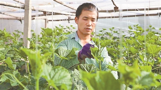 走进云南绿业元果蔬有限责任公司的蔬菜大棚里,只见一根根鲜嫩的黄瓜吊在一人多高的藤蔓上,长势十分喜人。近年来,元谋县元马镇始终坚持以农业农村资源为依托,以农业供给侧结构改革为主线,以打造“一村一品”为路径,做大做强黄瓜种植产业,走出了一条产业强镇、产业兴镇、产业富民的新路子。 各乡镇村委会牵头从农户手中收储土地,企业主体经营、村社提供服务、群众园区就业,努力实现村集体、群众和基地的三方“共赢”。黄瓜基地严格按照技术规范和食品安全规范标准统一种植、经营、管理、检测和销售,大力推广大棚、滴灌、工厂化育苗等高效节水农业新技术,推广测土配方施肥和物理杀虫灯等病虫害“绿色防控”技术,提高黄瓜种植质量,并积极组织申报“元谋黄瓜”地理商标认证。 “我们的黄瓜亩产量在12吨至15吨,亩产值在3.5万元左右。现在这一阶段是黄瓜的丰产期,每天都有500吨黄瓜销往全国各地。”云南绿业元果蔬有限责任公司总经理张晓康介绍,由于元谋县特殊的区位优势和光热资源,所产黄瓜无论从品质、口感、外观都深受广大客商的认可和喜爱。 据了解,2018年,元谋县农业综合开发高标准农田建设实施项目开工后,该县以元马镇禾阳村委会、星火社区为核心,开展万亩农田高标准建设,进驻企业共投入5000万元进行产业转型升级,带动附近村(社区)和周边乡镇全面开展黄瓜大棚种植。 本报记者 殷洁