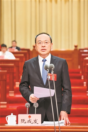 会议主席团常务主席、第一次全体会议执行主席阮成发主持开幕大会。