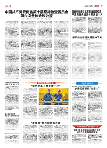 中国共产党云南省第十届纪律检查委员会第六次全体会议,于2021年1月30日至31日在昆明举行。出席这次全会的有省纪委委员44人,列席326人。 省委书记阮成发出席全会并讲话。省委常委,省人大常委会、省政府、省政协领导同志及省高级人民法院院长、省人民检察院检察长出席会议。有关方面负责同志参加会议。 全会由省纪委常委会主持。全会以习近平新时代中国特色社会主义思想为指导,全面贯彻党的十九大和十九届二中、三中、四中、五中全会精神,学习贯彻习近平总书记重要讲话和十九届中央纪委五次全会精神,总结2020年纪检监察工作,部署2021年任务,审议通过了冯志礼同志代表省纪委常委会所作的《推动新时代云南纪检监察工作高质量发展,为“十四五”开好局提供坚强保障》工作报告。 全会认真学习、深刻领会习近平总书记十九届中央纪委五次全会重要讲话。一致认为,讲话充分肯定过去一年全面从严治党取得新的重大成果,深刻阐述全面从严治党新形势新任务,强调全面从严治党首先要从政治上看,不断提高政治判断力、政治领悟力、政治执行力,一刻不停推进党风廉政建设和反腐败斗争,充分发挥全面从严治党的引领保障作用,以强有力的政治监督,确保“十四五”时期目标任务落到实处。讲话高屋建瓴、思想深邃、内涵丰富,是推进全面从严治党向纵深发展的重要遵循。赵乐际同志代表中央纪委常委会所作的工作报告,坚持和突出高质量发展主题、主线,充分体现了坚决做到“两个维护”、充分发挥监督保障执行、促进完善发展作用的政治自觉和政治担当。阮成发同志在省纪委十届六次全会上的讲话,全面贯彻习近平总书记重要讲话和十九届中央纪委五次全会精神,深刻分析云南全面从严治党的形势,对进一步加强全省党风廉政建设和反腐败工作、全面深入推进云南政治生态建设作出安排部署。全省各级党组织和广大党员干部特别是纪检监察干部要认真学习领会,强化责任担当,知责于心、担责于身、履责于行,坚决贯彻落实党中央和中央纪委、省委的决策部署。 全会指出,在党中央和中央纪委、省委的坚强领导下,近年来,云南党风廉政建设和反腐败斗争成效显著。全省纪检监察机关坚持稳中求进工作总基调,全面起底政治生态污染底泥,坚决肃清白恩培、仇和等特别是秦光荣流毒,反腐败斗争力度不减、节奏不变、向各领域精准发力,云南政治生态修复净化建设发生深刻变化,步入了由乱而治、因治转好的全新阶段。 全会认为,2020年,全省各级纪检监察机关坚持不懈学懂弄通做实习近平新时代中国特色社会主义思想,在学习中定向明志、在领会中坚定执行,把“两个维护”贯穿于监督执纪执法全过程,在防控疫情斗争、决胜全面建成小康社会、决战脱贫攻坚等大战大考中忠诚履职尽责,强化政治监督。坚持“严”的主基调,坚持“三不”一体推进,抓牢抓实“八个坚决肃清”,突出查处对修复净化政治生态有震慑效果、有促进作用的重大典型案件,精准运用“四种形态”,系统化集成式谋划和推动查办案件、健全制度、强化监督、教育警示工作,有力发挥政治生态“护林员”作用。全力保障脱贫攻坚决战决胜,深挖彻查涉黑涉恶腐败和“保护伞”,深入纠治形式主义、官僚主义。强化“常态化、近距离、可视化、规范化”精准监督,深化政治巡视巡察,监督工作从“惩治极少数”向“管住大多数”深化拓展。加强纪检监察机关自身建设,以高素质队伍支撑工作高质量发展,进一步巩固放大了政治生态正气充盈、向上向善的效果。 全会强调,面对新形势新任务,全省各级纪检监察机关要深入贯彻落实党的十九届五中全会精神,立足新发展阶段,贯彻新发展理念,构建新发展格局,推动新时代云南纪检监察工作高质量发展,充分发挥全面从严治党引领保障作用。要坚守职责定位,更加突出政治监督,更加突出高质量发展主题,更加突出整治群众身边腐败和作风问题,更加突出发挥监督治理效能,更加突出严管厚爱结合、激励约束并重。要清醒地认识到当前云南腐蚀和反腐蚀斗争依然严峻复杂,始终保持高压态势不松、坚持“严”的主基调不变。要不断深化对新时代纪检监察工作的规律性认识,必须坚定稳妥,坚持稳中求进的工作总基调;必须标本兼治,坚持“三不”一体推进的方针方略;必须系统施治,坚持统筹兼顾的系统观;必须实事求是,坚持高质量发展的生命线。 全会提出,2021年纪检监察工作的总体要求是:以习近平新时代中国特色社会主义思想为指导,全面贯彻党的十九大和十九届二中、三中、四中、五中全会精神,学习贯彻十九届中央纪委五次全会精神,增强“四个意识”、坚定“四个自信”、做到“两个维护”,坚持稳中求进工作总基调,立足新发展阶段,贯彻新发展理念,构建新发展格局,以推动高质量发展为主题,坚定不移全面从严治党,坚持和完善党和国家监督体系,忠实履行党章和宪法赋予的职责,有力推动党中央决策部署有效落实,围绕现代化建设大局发挥监督保障执行、促进完善发展作用,一体推进不敢腐、不能腐、不想腐,深化纪检监察体制改革,扎实推进规范化法治化建设,切实加强干部队伍建设,为“十四五”开好局提供坚强保障,以优异成绩庆祝建党100周年。 全会要求,全省各级纪检监察机关要旗帜鲜明讲政治,坚持从政治的、全