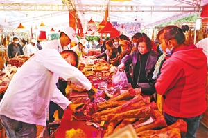 临近春节,昆明街头腊肉飘香,年味更浓。宣威火腿、板鸭、香肠、干货……琳琅满目的年货吸引了不少市民前来选购。