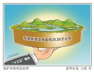 新华社北京2月2日电(记者 胡璐) 2日是第25个世界湿地日。国家林业和草原局湿地管理司副司长李琰2日表示,“十三五”期间,我国湿地保护与修复水平全面提升,新增湿地面积20.26万公顷,湿地保护率达到50%以上。 她是在国家林草局2日举行的新闻发布会上作出上述表示的。 李琰说,湿地是全球重要生态系统之一,具有涵养水源、净化水质、维护生物多样性、蓄洪防旱、调节气候和固碳等重要的生态功能,对维护我国生态、粮食和水资源安全具有重要作用。“十三五”期间,我国统筹推进湿地保护与修复,增强湿地生态功能,维护湿地生物多样性。新增国家湿地公园201处,截至2020年国家湿地公园共899处。新指定国际重要湿地15处,组织开展国际重要湿地生态状况年度监测。 她同时表示,虽然湿地资源保护形势明显好转,但随着经济社会快速发展和城镇化深入推进,占用、污染、过度利用等破坏湿地的现象仍时有发生,我国湿地保护仍面临巨大挑战。 李琰说,“十四五”期间将全力推进湿地保护立法,不断完善湿地保护修复制度建设,并实施一批湿地保护修复国家重点工程项目, 做好长江经济带、京津冀等国家重大战略的湿地保护修复工程。还将构建国家、省级和湿地地点的三级监测体系,不断加强湿地监督管理。 此外,她说,还将深度参与《关于特别是作为水禽栖息地的国际重要湿地公约》履约事务,贡献湿地保护中国方案,并结合“一带一路”建设,深化湿地合作,积极探索湿地保护与合理利用的有效模式,引导人们转变生产生活方式,促进改善湿地所在地民生,提高可持续发展能力。 会上,还发布了《中国国际重要湿地生态状况》白皮书。白皮书显示,与2015年至2018年相比,2019年我国内地56处国际重要湿地的生态状况总体保持稳定。