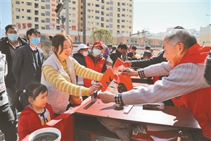 冬日暖阳下,会泽县新时代文明实践中心门前的小广场上熙熙攘攘,像赶集一样热闹。家住县城安置点的搬迁户王文选一家早早就来广场上排队,当拿到会泽县书法协会的书法家写的春联“移风易俗即日起,生活合美欢乐多”时,全家人开心地笑了。 王文选一家是2019年从马路乡弯寨村搬迁进城的贫困户。进城后,王文选当上了送水工,长子考上了浙江大学,一家人合合美美,过上了幸福生活。 “往中间靠一点,头抬起来,笑一笑。”在广场另一边,会泽县摄影协会的摄影师正在为安置点群众义务拍摄全家福。拿到照片的搬迁户王万巧高兴地说:“太好了,挂在新房子里正好!”照片上,他们一家人手持春联喜气洋洋,身后的背景是蓝天和崭新的楼房。 当天,志愿者们还走进搬迁户家中,开展“迎新春送温暖”志愿服务活动。他们送去了春联、手套、围巾等礼品,并与群众拉家常,了解其家庭情况及存在的困难。 张必聪一家是从火红乡搬迁而来的贫困户,搬迁后,一家人通过勤劳务工过上了好生活,还因为表现突出被社区评为文明家庭。志愿者给张必聪家送来了春联“脱贫致富跟党走,坚定信念奔小康”,一家人开心地贴着春联,脸上洋溢着幸福的笑容。 本报记者 张雯 通讯员 李勇达 刘坚