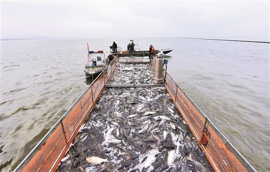 自2011年杞麓湖实施“以渔净水”项目以来,通过人工放流鲢、鳙等滤食性鱼类,利用食物链对水中的氮、磷等营养物质进行转化,在改善水质、促进水域生态良性循环的同时,逐步探索出一条集生态、经济、社会效益共赢的湖泊保护治理模式。图为满载而归的冬捕渔船。本报通讯员 曾永洪 摄
