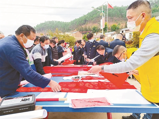 近日,丘北县平寨乡蚌勒上寨村小组人头攒动,该县“迎建党百年华诞·庆圆梦小康新春”新时代文明实践“公益集市”热闹开市,县新时代文明实践中心组织多支志愿服务队深入基层送政策、送祝福、送健康、送欢乐,深受群众欢迎。