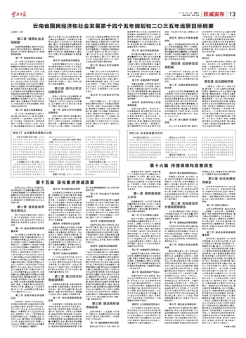 《云南省国民经济和社会发展第十四个五年规划和二〇三五年远景目标纲要》