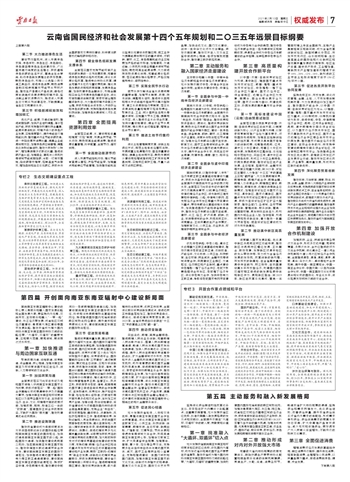云南省国民经济和社会发展第十四个五年规划和二〇三五年远景目标纲要