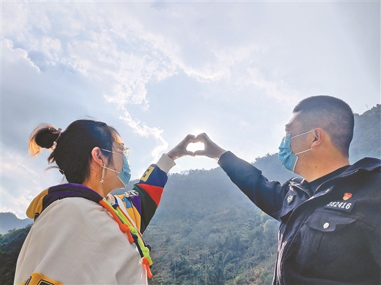 今年春节,腾冲出入境边防检查站的移民管理警察及家属积极响应“就地过年,非必要不返乡”的号召,选择留在本地过年。 盛祥超驻守在腾冲出入境边防检查站鹿马登分站,妻子江炯居住在山东青岛。两人2008年相识,2015年确定恋爱关系,2020年喜结连理。然而,由于相隔3000多公里,两人相爱多年却从未共度春节。“我们每年都约定在一起过年,但因任务需要,计划一次次搁浅。”盛祥超说。 为做好疫情防控工作,今年春节盛祥超再次爽约。江炯只能说服家人,从青岛来到西南边陲与丈夫团聚。 家属难得来一次,站领导安排盛祥超与妻子一起住在站部,暂时不参加一线执勤任务。盛祥超却说:“我作为执勤队一员,面对疫情,应该回到一线执勤岗位上。”他的决定得到了妻子的支持。因为团聚的时间短暂,两人十分珍惜,江炯决定随丈夫到一线执勤岗位,她对丈夫说:“你守护边境安宁,我陪伴在你左右。” 盛祥超回到一线执勤岗位,春节以来累计检查过往人员3600余人次、车辆1100余辆次。江炯陪伴在他身边,被过往人员称赞为“抗疫夫妻岗”。 本报记者 普孟秋 通讯员 普家亮
