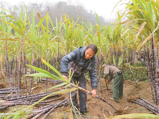 基层见闻 初春时节,元阳县牛角寨镇大顺寨村的空气中弥散着甜丝丝的味道,蔗农们迎来了一年一度的大丰收。在百亩甘蔗种植基地里,青翠挺拔的甘蔗在冬日的阳光下闪着亮光,蔗农们忙着采收,把捆扎好的甘蔗码放在田间。 因为看好甘蔗的市场行情,村民白庆贵去年扩大了种植规模,除了种好自家两亩地,他又流转了8亩,看着一棵棵节长粗壮、色泽黑亮的甘蔗,他脸上洋溢着收获的喜悦。他爽快地说:“我栽的甘蔗都是用农家肥,吃起来汁多渣少,就像喝果汁。” 一大早,收购商耿建国开车来到村里,指挥村民把一捆捆甘蔗搬运上车。“大顺寨村的水果甘蔗远近闻名,拉到附近的乡间集市非常受欢迎,在周边的寨子也很好卖。”他说,“过年了,家家都喜欢买几根,取个‘步步高升节节甜’的寓意。” 以前甘蔗收割后,甘蔗叶、甘蔗梢会被直接丢弃在田地里,农户还需要花费时间处理,自从农科站推广青储饲料配方后,附近的养牛户尝试着用冬贮甘蔗叶解决冬春季节缺乏青饲料的难题。卖完甘蔗,加工厂直接到田里收购余料,种植户百庆贵说:“现在甘蔗的叶梢也能变成钱,吃干榨尽一点不浪费,我们又多增加一份收入。” 在元绿公路旁的水果交易市场,前来购买的客人络绎不绝。“今年生意好,每天拉来几十捆都卖得完,来自绿春、元江甚至昆明的客人都有,生意好不愁卖。今年种了10亩多,大概可以收入13万元,日子算是活出了甜味来。”正在为客人削皮的蔗农陶绣英心里乐开了花。 本报记者 李树芬 通讯员 卢梦妮 方婷 文/图