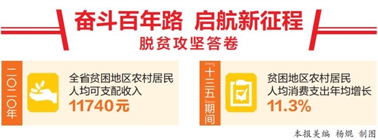 本报讯(记者 胡晓蓉) 国家统计局云南调查总队近日发布的数据显示:2020年,全省贫困地区农村居民人均可支配收入11740元,比2015年增加4670元;“十三五”时期年均增长10.7%,年均增速分别比全国、全省农村居民平均增速高2.3和1.4个百分点,圆满实现贫困地区农村居民增收目标。 “十三五”期间,我省坚持以习近平新时代中国特色社会主义思想为指导,以脱贫攻坚统揽经济社会发展全局,强化“军令状”和“交总账”意识,举全省之力,认真落实挂牌督战要求,大力支持扶贫产业发展,深入开展消费扶贫行动,采取超常规举措,以前所未有的力度推进脱贫攻坚,全省贫困地区农村居民收入快速增长,公共服务水平明显改善,农村居民生活质量大幅提升。 从贫困地方农村居民收入的构成情况看,工资性收入从2015年的1902元提高至2020年的3994元,增加2092元,增长210%,年均增幅16%;经营净收入从4047元提高至2020年的5364元,增加1317元,增长32.5%,年均增幅5.8%;财产净收入从2015年的59元提高至2020年的93元,增加34元,增长57.6%,年均增幅为9.5%;转移净收入从2015年的1062元提高至2020年的2289元,增加1227元,增长215.5%,年均增幅为16.6%。 全省贫困地区基础设施及公共服务持续改善。截至2020年,全省贫困地区通电和通电话基本实现自然村全覆盖;所在自然村通有线电视信号、通宽带的农户比重分别达到99.7%和98.0%,其中通宽带的农户比2016年提高26.9个百分点,贫困地区“四通”覆盖面不断扩大。贫困地区交通条件明显改善,所在自然村进村主干道路硬化的农户比重达99.6%,比2016年提高11.3个百分点;所在自然村能便利乘坐公共汽车的农户比重达72.1%,比2016年提高24.5个百分点。贫困地区农户住房质量、居住设施及周边生活环境明显改善;教育、医疗服务能力不断提高。 从消费情况看,“十三五”期间,全省贫困地区农村居民人均消费支出年均增长11.3%。2020年,全省贫困地区农村居民人均消费支出9715元,比2015年增加4029元,年均增长11.3%,高于全省人均可支配收入增速0.6个百分点;消费支出占可支配收入的比重达82.8%,比2015年提高2.4个百分点。在收入持续较快增长、基础设施及公共服务持续改善的带动下,贫困地区农村居民消费信心增强,消费水平大幅提升。