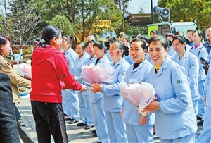 “三八”妇女节来临之际,云南省传染病医院为女性医护人员和保洁人员送上鲜花,感谢她们一年来对医院工作和病区环境卫生作出的贡献。