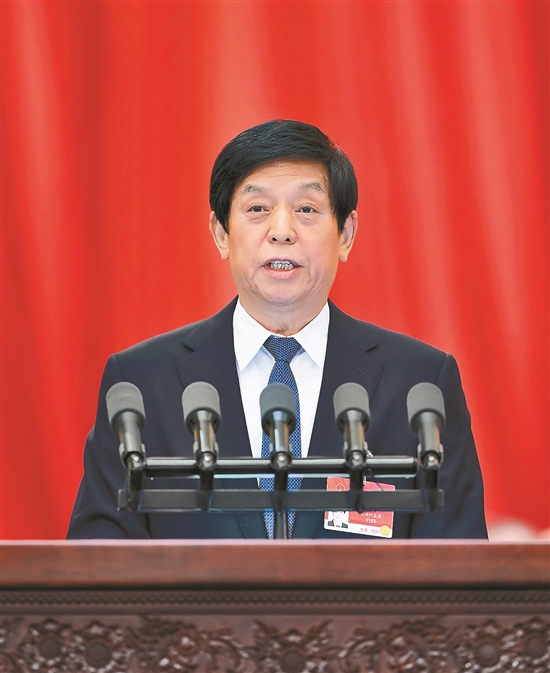 受全国人大常委会委托,栗战书委员长向大会报告全国人大常委会工作。栗战书在报告中指出,在以习近平同志为核心的党中央坚强领导下,全国人大常委会坚持以习近平新时代中国特色社会主义思想为指导,深入贯彻习近平法治思想,履职尽责、积极作为,为推动重大工作部署、应对重大风险挑战、维护国家安全提供法律保障,有效发挥了国家权力机关的职能作用。