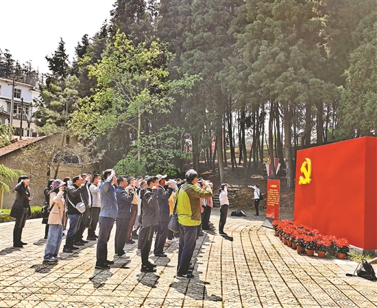 本报讯(记者 郑千山) 3月24日,省社科联组织98家省级社科学术社团负责人141人前往蒙自芷村镇中共云南一大会址查尼皮,追寻红色记忆,缅怀革命先烈,重温入党誓言,认真贯彻党史学习教育。 省级学术社科社团负责人参观了中共云南一大会址以及党史陈列馆中珍贵的史料照片和文物,聆听中共云南第一次代表大会召开的历史介绍,体会云南早期党组织建立革命根据地的历史功绩和牺牲精神。他们表示,要从革命先烈的光辉历史中汲取精神力量,进一步提升省级社科学术社团政治站位,加强党建工作实践,提高专业业务水平。 查尼皮是云南早期重要革命根据地。1928年10月13日,中共云南第一次代表大会在这里召开,从而掀起了云南革命高潮。
