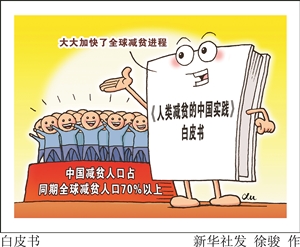新华社北京4月6日电(记者 侯雪静 黄垚) 国务院新闻办公室6日发布的《人类减贫的中国实践》白皮书指出,改革开放以来,按照现行贫困标准计算,中国7.7亿农村贫困人口摆脱贫困;按照世界银行国际贫困标准,中国减贫人口占同期全球减贫人口70%以上,大大加快了全球减贫进程。 白皮书显示,中国打赢脱贫攻坚战,提前10年实现《联合国2030年可持续发展议程》减贫目标,显著缩小了世界贫困人口的版图。作为世界上最大的发展中国家,中国实现了快速发展与大规模减贫同步、经济转型与消除绝对贫困同步,如期全面完成脱贫攻坚目标任务。 新中国成立以来,中国减贫在资金投入、知识转移、技术援助等方面获得国际社会支持。白皮书指出,“中华民族是懂得感恩、投桃报李的民族”,中国始终在力所能及的范围内为其他国家减贫和发展提供支持。 多年来,中国向亚洲、非洲、拉丁美洲等地区160多个国家和国际组织提供多种形式的援助,减免有关国家债务。中国发起共建“一带一路”倡议,支持帮助相关国家更好实现减贫发展。据世界银行研究报告,共建“一带一路”将使相关国家760万人摆脱极端贫困、3200万人摆脱中度贫困。