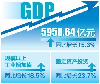 本报讯(记者 胡晓蓉) 省统计局4月19日发布数据显示,一季度全省地区生产总值5958.64亿元,同比增长15.3%,两年平均增长5%。