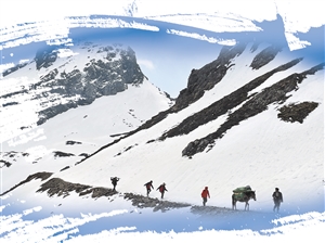 人物故事 4月9日清晨,德钦白马雪山腹地,5个人,一匹马,百来斤的装备和物资,呼啸的风从大衣的缝隙钻入身体,走烂的鞋里挤满了积雪……这是中国地质调查局昆明自然资源综合调查中心森林资源调查项目组临时组成的前去攻克149号样地的“党员突击队”。历时两天两夜,从白马雪山4000多米的垭口下到谷底,再沿着河谷上溯,到达主峰下最高的冷杉林边缘,“党员突击队”顺利完成149号样地森林资源调查任务。 “149号样地地处白马雪山核心区域,海拔超过5000米,白天温度大约在零下30度左右,离下车徒步点直线距离6000米,预计明天中午能够到达,今晚计划在海拔4200米处的一个牛棚过夜。”突击队员杨永军用力拧开早已冻成冰块的矿泉水瓶介绍。从海拔2000米的亚热带干暖性河谷灌丛到海拔4000米的高山流石滩,脚下是冰雪覆盖的山路,眼前是千万年的冰川,贝母、各类野生菌、高山杜鹃、绿绒蒿、大果红杉……沿途物产丰饶。在雪山和雪山之间行走,生不起火,没有热水,一份自热火锅就是队员们的午饭。 冒着零下30度的低温,队员们扛着装备物资,每人负重三十来斤,深一脚浅一脚地继续攀登着,睫毛、鬓角、胡须上挂满冰霜。“爬冰卧雪,困难是有的,但作为突击队的一员,我感到光荣与自豪。”队员王晓龙说道,“我打小在平原长大,爬雪山搞调查还是头一回,由于山上连续飘起雪花,又迅速结冰积雪,本来就少有人迹的山路难度可想而知。” 进入白马雪山典型U型的冰碛谷两侧的样地,队员们开始作业。他们两两分组,前面两人手持砍刀,砍界标号、鉴别树种、测量胸径、油漆划线、丈量树高,后面两人用RTK定位仪采集地理坐标,定位起点、书写标桩、架罗盘仪、每木检尺、记录平板,每道程序一丝不苟。在遇到陡坡障碍时需要手脚并用,后面的人要踏着前人脚印,一步一步紧紧跟随,有时需牢牢抱住身边的树干才能稳住身体。 森林资源调查目的在于查清森林资源数量、质量、结构和分布,掌握森林资源现状与动态,形成资料存档、上报。调查中,精度为要,否则差之毫厘,失之千里,为保证周界通直,遇林密雪滑无路可走时,队员便四肢着地,顺着样木根部爬过去。为确保精度,每木检尺反复量测,特别边界木、异形木量测要格外仔细,努力做到判得对、量得好、测得准。 上山40小时,下山5小时,爬冰卧雪、认真调查,党员突击队用两昼夜时间顺利攻坚149号样地,标志着昆明中心2020年度森林资源调查任务即将画上句点。 本报记者 陈怡希 通讯员 张龙 杨永军