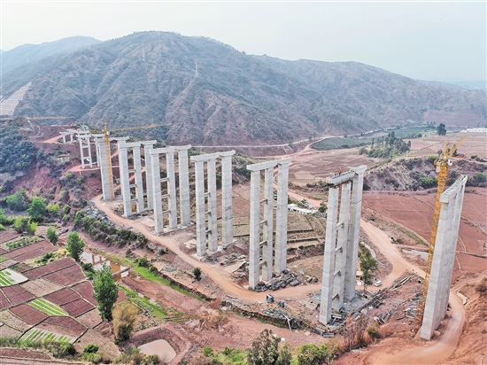 本报讯(通讯员 周佳 赵仁山 记者 李承韩) 5月11日,由中铁二局承建的玉溪至楚雄高速公路芭蕉箐隧道右幅顺利贯通。 芭蕉箐隧道全长3688米,是玉楚高速公路二期最长的隧道,也是兑现今年底通车目标的控制性工点。隧道穿越多个断层破碎带,且隧道上方有村寨、下层有多变围岩,施工难度大、风险高。自2019年1月开工建设以来,承建该隧道的中铁二局云南玉楚高速公路TJ-11标项目部采取超前加固、短进尺、快封闭、勤量测的保守安全施工方案,向前稳步掘进,并加强日常安全教育、隐患排查和领导带班制度,实现了进度与安全的双保障。 本报讯(通讯员 瞿朝晖 李欢 记者 胡晓蓉) 近日,由中铁五局五公司承建的玉溪至楚雄高速公路控制性工程大庄大桥最高墩柱浇筑完成,为下一步T梁架设奠定了坚实基础。 玉楚高速公路TJ-14标项目位于双柏县境内,包含桥梁双线共31座,其中大庄大桥是标段内墩高最高大桥,也是标段内重点工程。大庄大桥全长480米,左幅共4联,右幅共3联。此次浇筑的左幅4号门架空心墩高64米,采用翻模施工法,每次浇筑4.5米,墩身共浇筑混凝土1181.7立方米。按照玉楚高速指挥部“决战保生产,决胜保通车,大干120天”劳动竞赛活动目标,项目部全体参建人员放弃节假日、坚守一线,确保项目建设安全可靠、质量过关、按期完成,实现今年底全线通车目标。 图为玉楚高速公路大庄大桥。